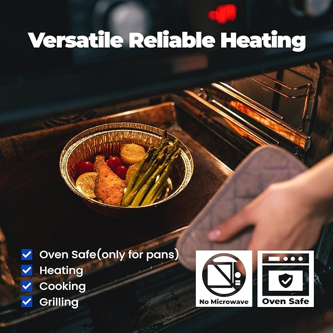 - Time-Saving and Eco-Friendly: Made from 100% recyclable aluminum, our pans save you time and effort while reducing waste and your carbon footprint. Simplify your life and contribute to a greener future with our eco-friendly foil containers and lids.