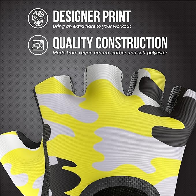 5217 Women's Design Series Camo Print Lifting and Rowing Gloves (Pair) - Lightweight Vegan Medium Padded Microfiber Amara Leather w/Griplock Silicone