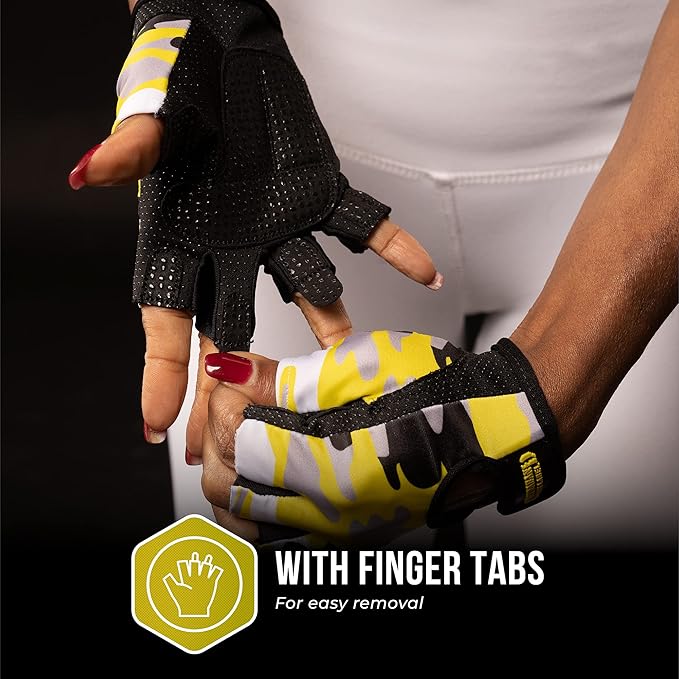 5217 Women's Design Series Camo Print Lifting and Rowing Gloves (Pair) - Lightweight Vegan Medium Padded Microfiber Amara Leather w/Griplock Silicone