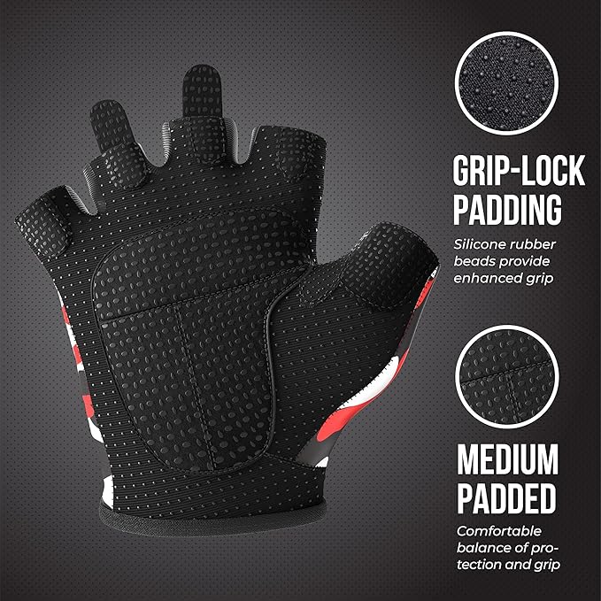 - π MEDIUM PADDED - GRIPLOCK PADDING - These gloves feature a comfortable medium foam padded palm which provides a balanced amount of protection and grip. Silicone rubber on the palm provides a grippy surface far superior to traditional leather.