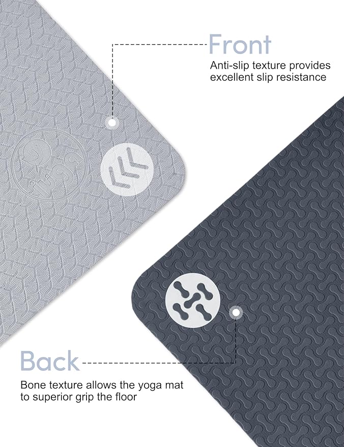 - Double-Sided Grippy not Slippy: IUGA yoga mat textured top prevents feet slippage, while the unique 'Bone' pattern underside keeps it firmly in place—for confident poses in any intensity practice