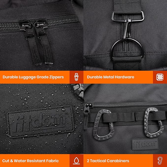 - A BIG XLARGE DUFFELBAG THAT YOU DO NOT NEED TO BABYSIT – Looking for a dependable bag for your precious items? We got it covered. Every inseam is covered by additional binding to make sure your heavy gear stays in the bag. Compression straps help to secure your items so it does not move around. Also you will never have to worry about occasionally dragging the bag because the bottom is protected by cut resistant fabric.