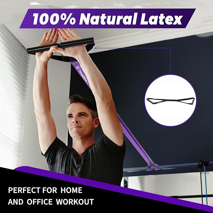 - WIDE APPLICATION: Resistance bands set is equipped with a door anchor and 2 handles, which can not only help you perform pull-ups and work perfectly with dumbbells and barbells, but you can also use it to enhance front squats, push-ups and other movements, and perform them at any time at home Triceps press-downs, high-arm pull-downs, high-band rows, and more.