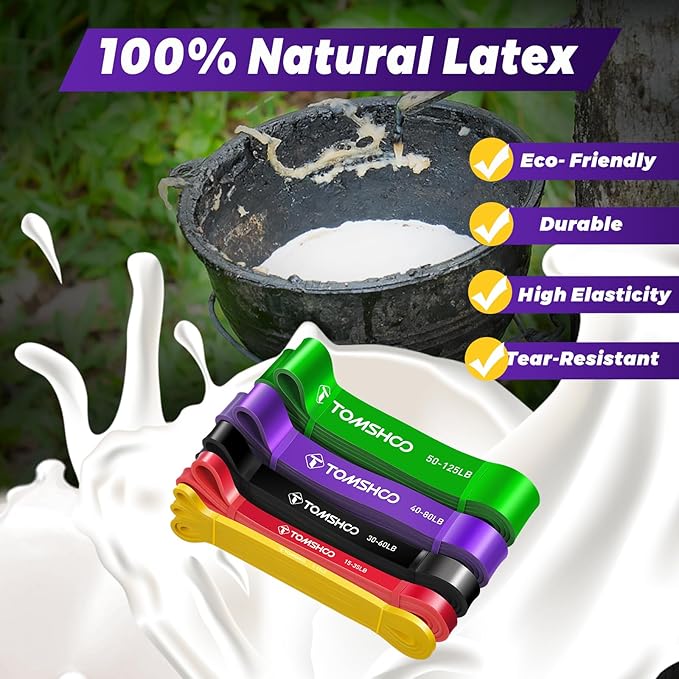 - NATURAL LATEX: Workout bands are made of 100% natural latex, this heavy-duty material is tear-resistant and can withstand extreme pulling forces, it is stronger than ordinary materials and lasts longer, you can train without worrying about tearing or wear .