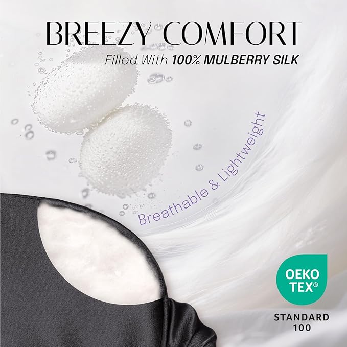 - UNINTERRUPTED SLEEP - As the breathable, natural fibers of silk allows healthy oxygen in while keeping dry air out; Smooth silk does not absorb skin lotions, so it won't mess with night eye creams or moisturizers on your face