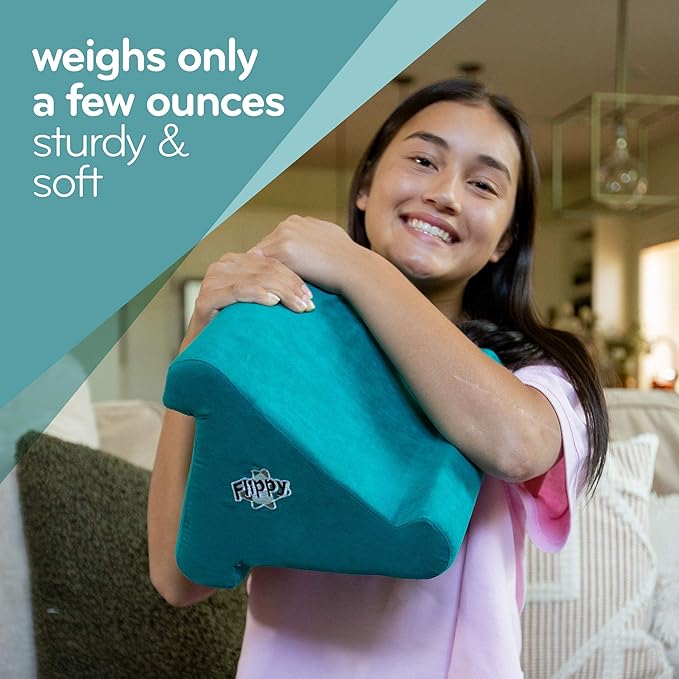 - DURABLE, LIGHTWEIGHT DESIGN: The Flippy is made of lightweight foam with a soft cover for a sturdy and flexible design. It weighs only a few ounces! The plush polyester exterior is extra soft and can be wiped off with a damp cloth. This product ships full size. The NEW AND IMPROVED FLIPPY has a storage cubby in the center for your personal items like earbuds, keys, and charging cords.