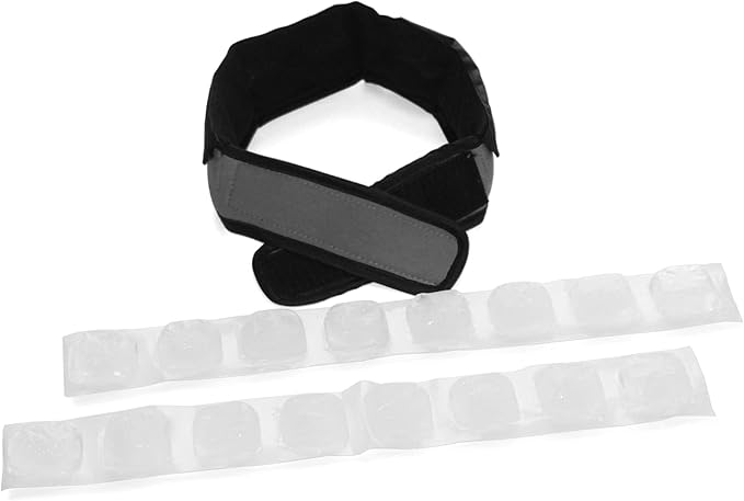 - FEATURES: Constructed with industrial-strength, food-grade plastic ice sheets, the FlexiFreeze Cooling Collar offers adjustable Velcro for a comfortable fit ranging from small necks (15") to large necks (24"). It includes two 8-cube strips of FlexiFreeze refreezable ice, keep one frozen and ready to switch out when you need it.