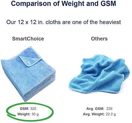 - PREMIUM QUALITY: At 320 GSM, our cloth is heavier than most microfiber cleaning cloths. Microfiber cloth has a soft, plush touch, and is highly absorbent and quick drying. This thick cloth set wicks water fast and dries quickly.