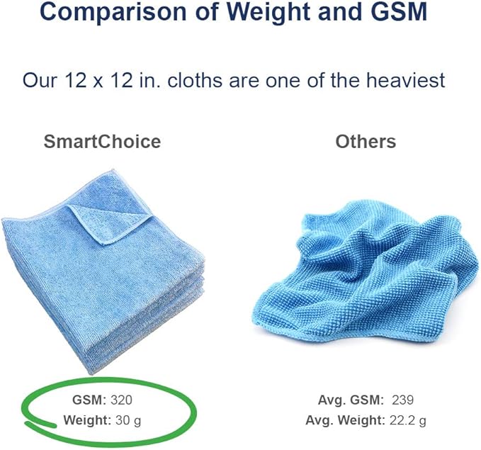 - PREMIUM QUALITY: At 320 GSM, our cloth is heavier than most microfiber cleaning cloths. Microfiber cloth has a soft, plush touch, and is highly absorbent and quick drying. This thick cloth set wicks water fast and dries quickly.