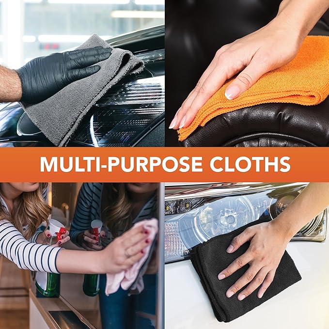 - MULTI-PURPOSE: Use Microfiber wash cloth with all cleaning supplies and for all cleaning needs. Perfect to use as a cleaning cloths for glass cleaning, kitchen, bath cleaning, eyeglass, screen, lens, mirror, camera ecloth cleaner, polishing cloth and as the perfect car cleaning cloth.