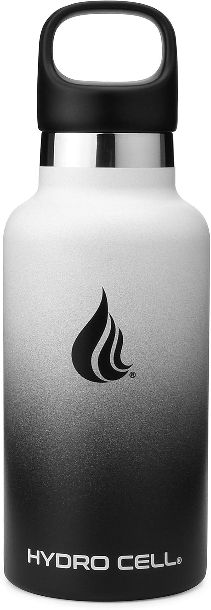 HYDRO CELL Stainless Steel Water Bottle with Straw & 2 Standard Mouth Lids (32oz 24oz 20oz 16oz) Keeps Liquids Hot or Cold w/Double Wall Vacuum Insulated Leak Proof Sport Design (Black/White 16oz)