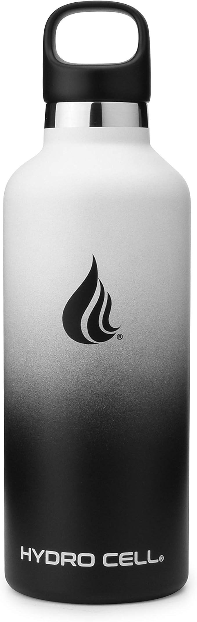 HYDRO CELL Stainless Steel Water Bottle with Straw & 2 Standard Mouth Lids (32oz 24oz 20oz 16oz) Keeps Liquids Hot or Cold w/Double Wall Vacuum Insulated Leak Proof Sport Design (Black/White 32oz)