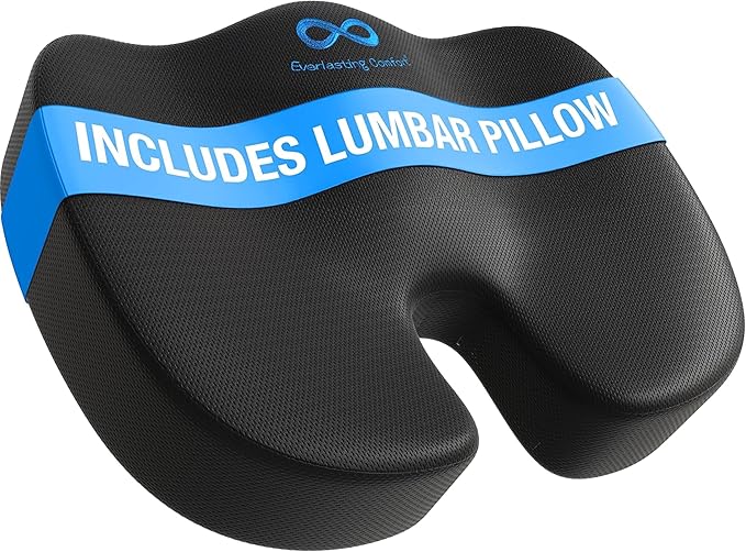 Everlasting Comfort Doctor Recommended Memory Foam Seat Cushion for Office Chairs & Car Seat - Ergonomic Office Desk Accessories for Tailbone Pain Relief, Sciatica & Back Support