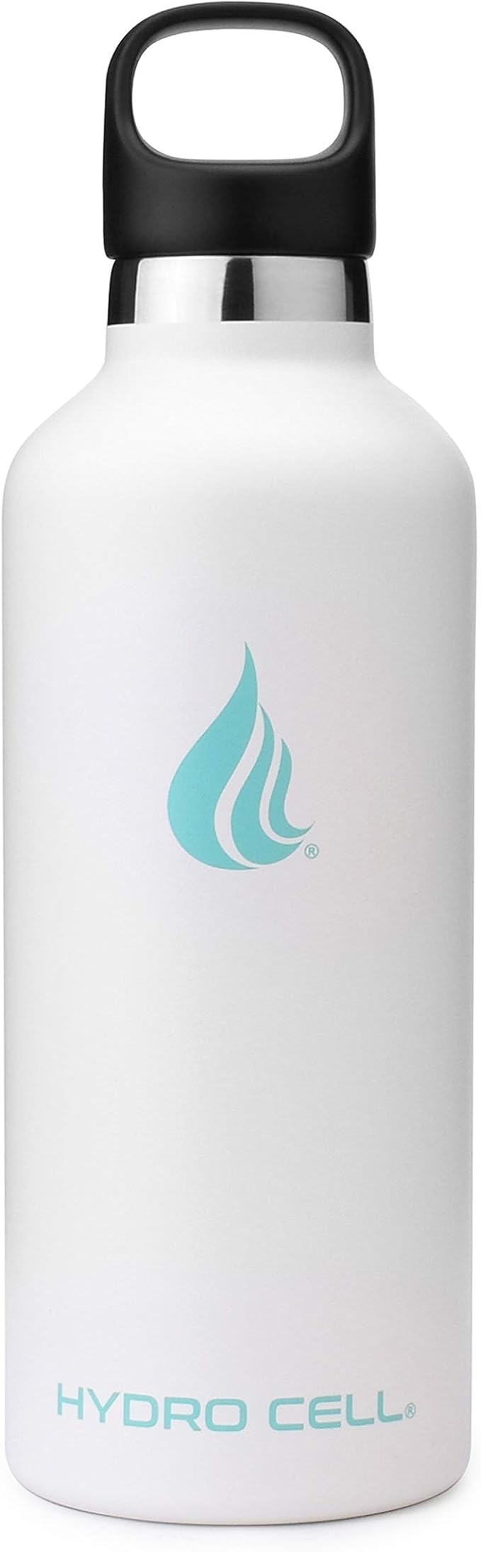 HYDRO CELL Stainless Steel Water Bottle with Straw & 2 Standard Mouth Lids (32oz 24oz 20oz 16oz) Keeps Liquids Hot or Cold w/Double Wall Vacuum Insulated Leak Proof Sport Design (White 32oz)