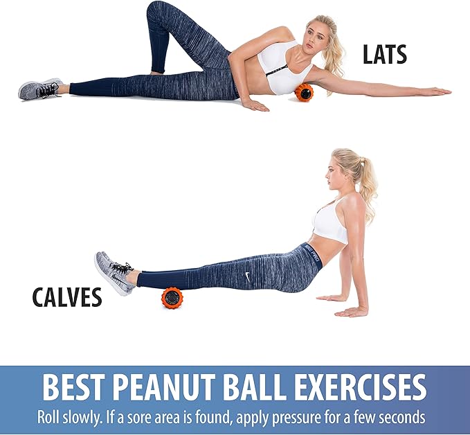 - Myofascial Release: As you roll onto the surface of the peanut massage ball, the low ridges "squeeze" muscles and high ridges "stretch" muscles to help alleviate any discomfort, muscle aches and spasms on your arms, lower/upper back, neck and legs