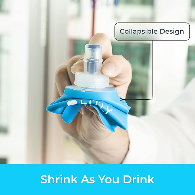 - HYDRATION ON THE MOVE: Our collapsible running soft flask is a compact and eco-friendly way to stay hydrated on the move! The soft water bottle is the perfect hydration tool for active individuals. Our soft water bottles for runners shrink as you drink, taking up minimal space and won’t slosh around, making it perfect for running, hiking, skiing or any rigorous activity.