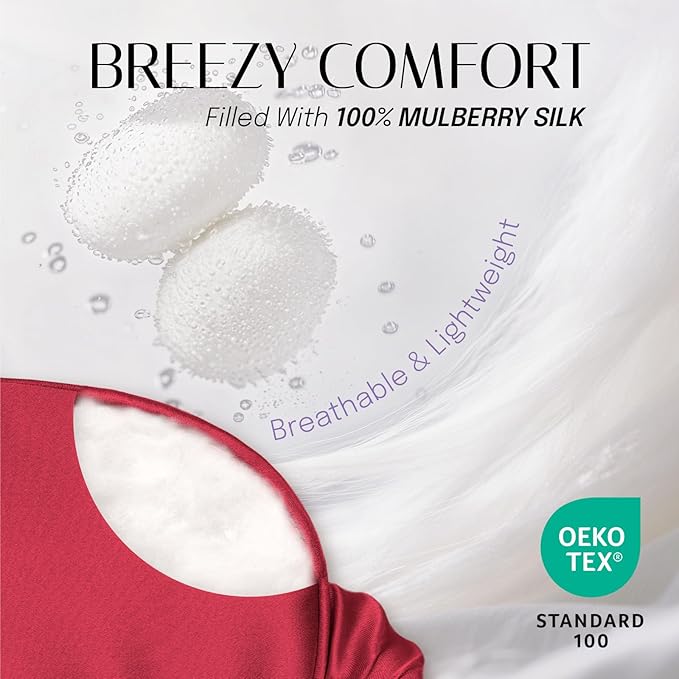 - MADE OF TOP MATERIAL - Not only both sides are made of 100% top quality 19 momme mulberry silk, also the filling is of 100% silk. Only super-soft, super-smooth pure silk offers the breathable, cool relaxation of the soothing masks found at the world’s premier spas