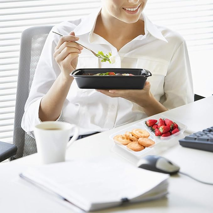 Enther 36oz Meal Prep Containers 20 Pack 3 Compartment with Removable Insert Tray 2 Tier Food Storage Bento Box with Lid, BPA Free Reusable Lunch Box Stackable/Microwave/Dishwasher/Freezer Safe Black