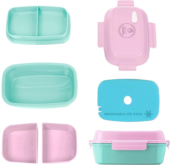 - REMOVABLE ICE PACK: Our insulated bento boxes include a removable ice-pack to keep your food fresh and cool. Perfect for school lunches, camp, trips, or a long day at the office. Great for girls, boys, teens, and adults of all ages.