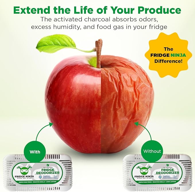 - POWERFUL FRIDGE DEODORIZER: Kick the stink out of your fridge once and for all with Fridge Ninja’s odor eliminator for strong odors. Our naturally activated bamboo charcoal odor absorbers banish lingering odors in your refrigerator for up to a year.