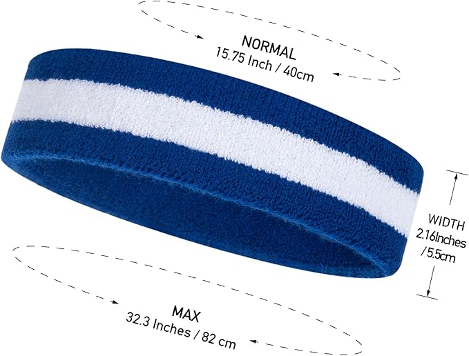 - ✓ Package include: 12 Pieces Blue/White/Blue Headband Set ( NO wristbands), Fashionable sport headband with most popular colors for you to choose above , wearing this headband will absorb all your sweat before it flows down from forehead, wick moisture away and dry quickly, making you totally focused in your sports! kindly pick up the one you like.