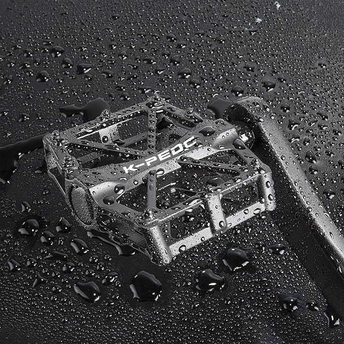 - WIDE PEDALS GOOD GRIPS: Dual Sided road mountain bike platform Aluminum ANTI-SKID nails for efficient pedaling. The spikes on the pedals allow you to hold your foot in place but are rounded enough , ,No sharp pins that might cut into your legs in the event of an accident. The platform pedals spindle was completed sealed to prevent water and dust from entering.