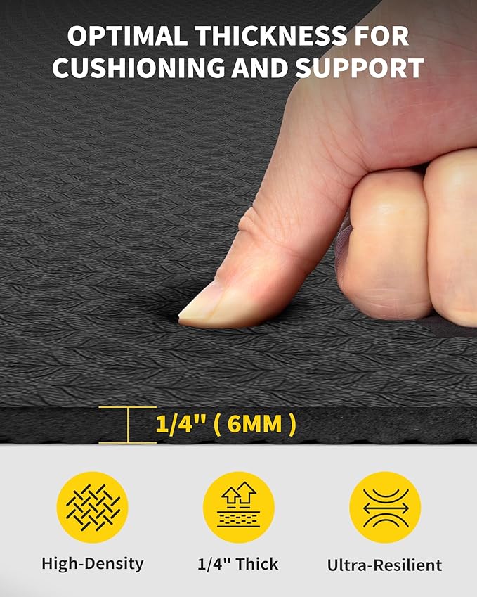 - Fitness Without Restriction: Extra length and width(72"x 48"), You will never feel restricted or limited by the size of this fitness mat; Extra-large space allows you to do any Yoga Poses, Pilates, Stretch, Foam Rolling, Cardio Workouts, Meditations and various barefoot bodyweight training like Squats, Lunges, Push-ups, Plank Variations, and Calisthenics