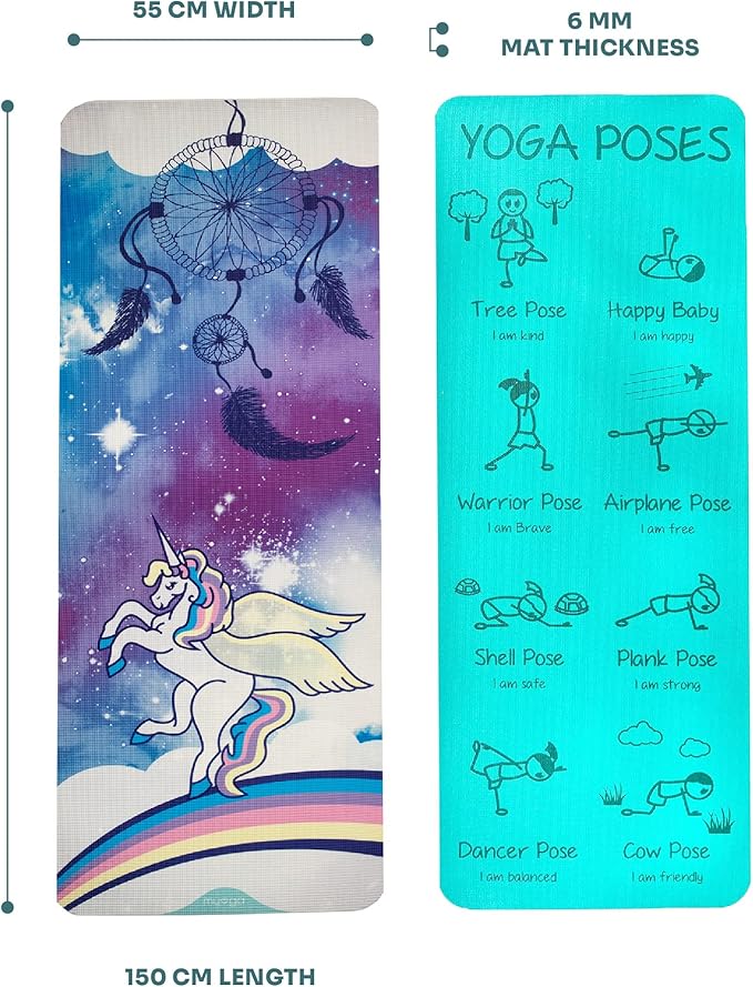 Myga Childrens Yoga Mat,Eco-Friendly Printed Yoga, Exercise and Fitness Mat for Kids,Features 8 Yoga Poses on the Reverse,Non-Slip, Extra Grip and Multi-Purpose Mat