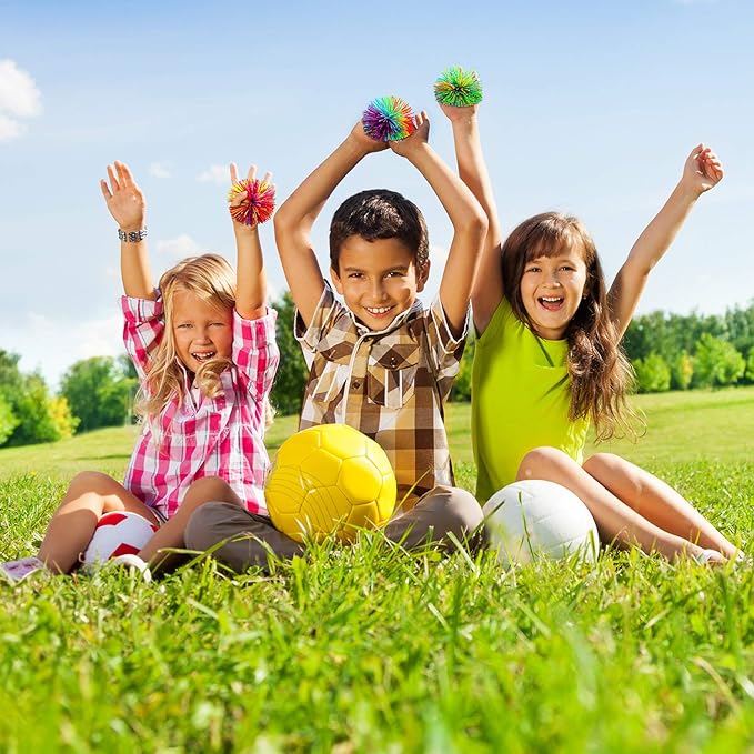 - Measurement: the diameter of the stringy ball is approx. 2.75 inch, proper size for palm, and good weight to play, rainbow color with silicone touch can bring unlimited fun for you, also is a great goodie bag for party and good gift for families and friends
