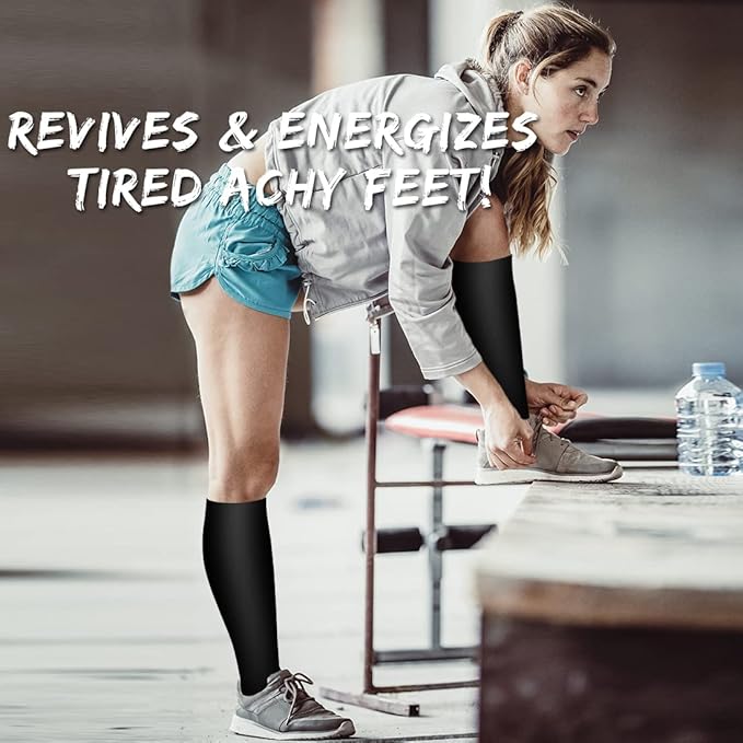 - Ture Graduated Compression-Graduated compression is the most effective form of compression, and works differently than regular compression socks. Work by creating a 'pressure gradient' which helps to push oxygen-poor blood out of the feet and legs, and back to the heart. This improves circulation, boost energy levels, and relieves symptoms such as aches and pains, throbbing, swelling, blood pooling, provides the renewable and sustained energy and allows you to heal in the legs and feet.