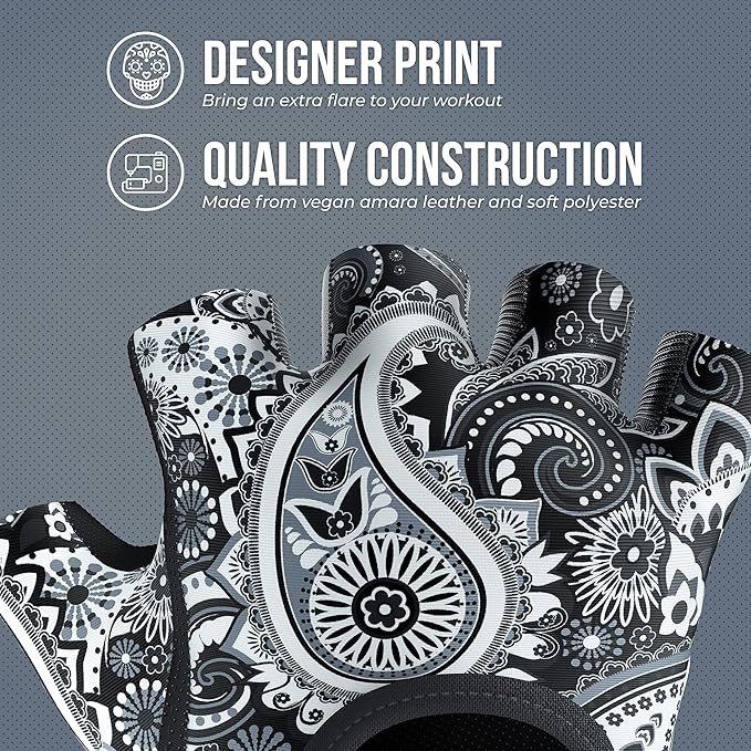 5387 Womens Design Series Paisley Print Lifting & Rowing Gloves (Pair) - Lightweight Vegan Medium Padded Microfiber Amara Leather w/Griplock Silicone
