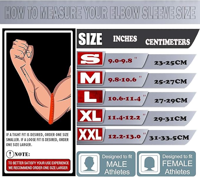 - EXTRA LENGTH, COMPLETE COVERAGE - Every size sleeve comes in full length for maximum coverage and support. Our elbow sleeves are designed to add warmth and compression through the elbow joint and surrounding muscles. NOTE: Due to the length and strength of materials used, tight sleeves may be very difficult to apply.