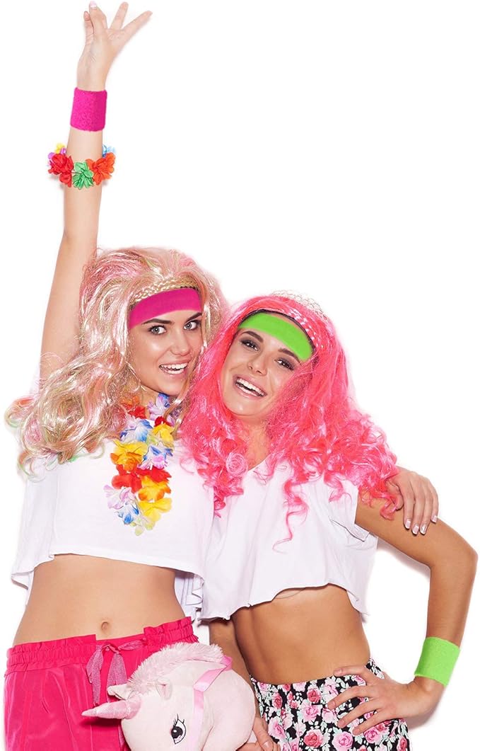 12 Pcs Sweatbands Set Neon Colors Headbands and Wristbands for Men Women Moisture Wicking Sweat Absorbing Workout Cotton Headbands 80s 90s Party