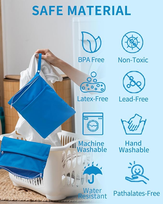 - Premium Quality & Water-Resistant: Babygoal wet bags are of high quality. The outer layer of wet bags are made of waterproof polyester and breathable TPU material. They are safe to preserve baby products, as they are completely free of dioxins, sodium polyacrylate and other chemicals, or contain any BPA, Phthalate, Latex or Lead as well.