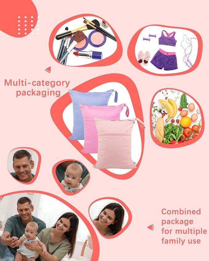 - Multi-Function: You will receive 3 pack wet bags, which size is 11.8"x14.2". They are perfect for preserving cloth diapers and other baby products, and they can also be used as swimsuit bags, bikini bags, bathing suit bags, travel bags, gym bags, storage bags, cosmetic bags, handbags, wash bags, organizer bags, breast pump parts bags, even as picnic bags. They are ideal for baby shower gift, get yours today!