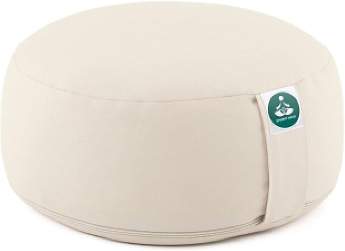 (Height 6.5") Round Zafu Yoga Bolster for Gymnastics & Meditation Made in the EU - Light Beige 100% Natural Cotton Yoga Meditation Buckwheat Meditation Cushion with Washable Covers
