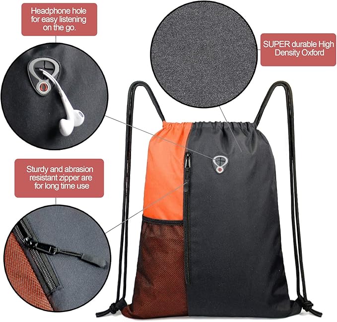 BeeGreen Oranage Drawstring Backpack Bag With Water Bottle Pocket &Front Zippered Pocket Sport Gym String Backpack Sackpack For Men Women
