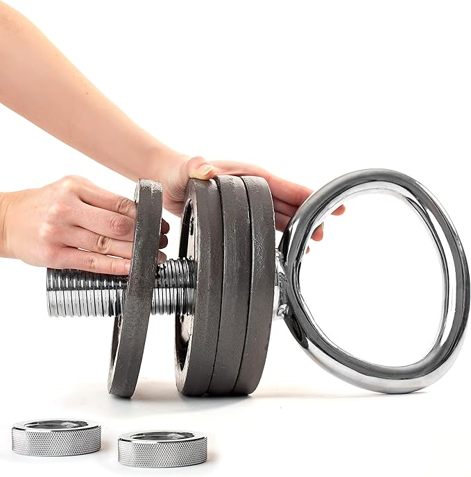 - High-Quality: The kettle grip for dumbbells is composed of high-grade solid stainless steel, with no inpurities added and built for heavy loads to last for years to come; stack an incredible 7.08" of weight plates