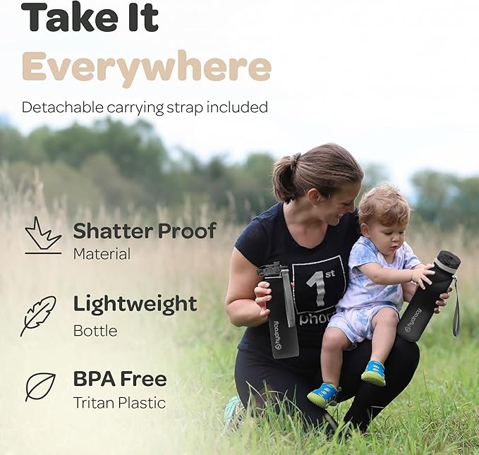 - 👍SMART DESIGN Equipped with a detachable travel carry strap, spill proof flip top lid, convenient wide mouth and a Fruit Infusion strainer, your stylish Hydracy water bottle has everything you wanted and more! It also comes with a 27 Detox Fruit infused water recipes eBook bonus!