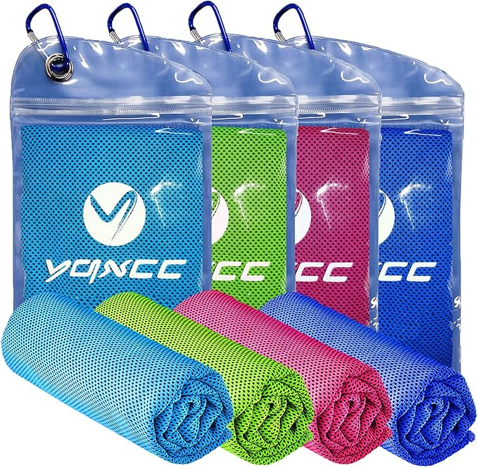 YQXCC Cooling Towels | 4 Pack 47"x12" | Ice Cool for Neck | Microfiber Soft Breathable Chilly | for Yoga, Sports, Golf, Gym, Camping, Running, Fitness, Workout & More Activities