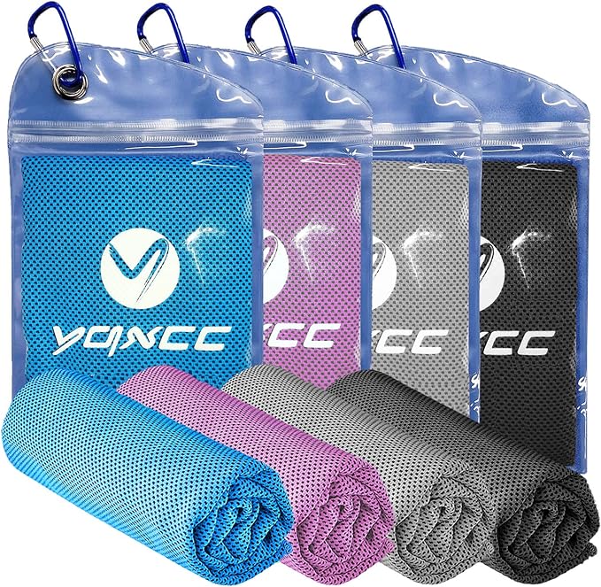 YQXCC Cooling Towels | 4 Pack 47"x12" | Ice Cool for Neck | Microfiber Soft Breathable Chilly | for Yoga, Sports, Golf, Gym, Camping, Running, Fitness, Workout & More Activities