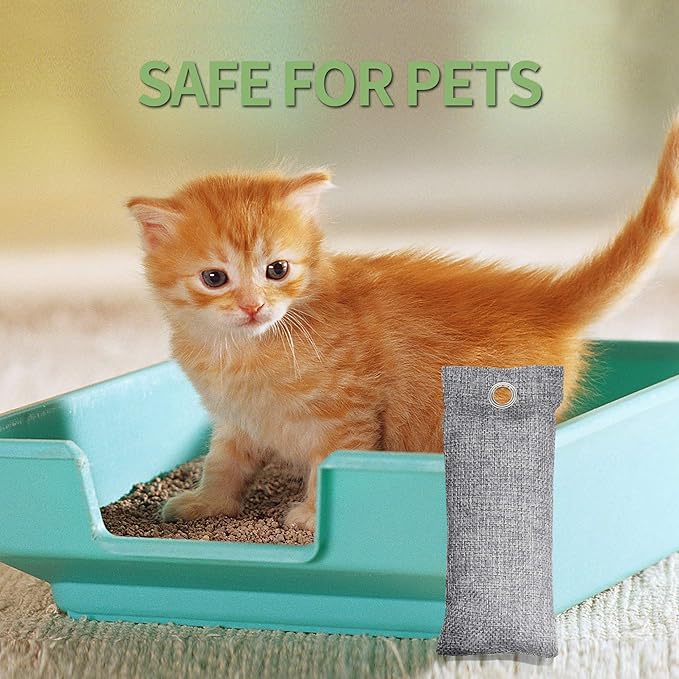 - NATURAL AIR PURIFIER: Bamboo activated charcoal is natural deodorant without fragrance and chemical, very healthy for cats, dog and baby. They are with nature flax packing are breathable will long-last up to 2 years, just reactivate them under the sun for 2 hours every month and they will work like new again. We are confident with our premium bamboo bags and offer 30 days no question asked money-back guarantee if you were not satisfied with the best odor eliminator bulk