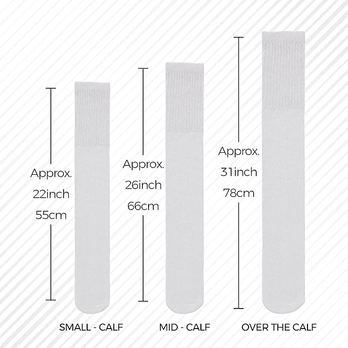 - ✅All Day Comfort: Unlike cheaper high rise socks that only support at the cuff, these tube socks support your entire calf and feet for more comfortable walking, working, or working out