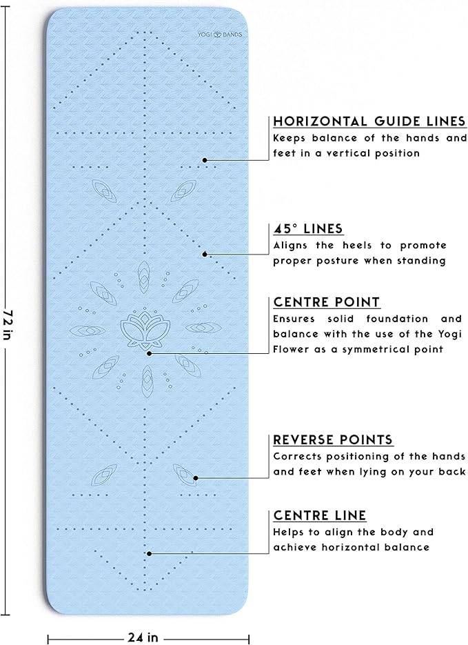 - ๐ง๐ผ BETTER POSES & POSTURE - Practice better yoga even without the help of an instructor. Our TPE yoga mat features guidance lines that let you focus on the alignment and balance of your body.