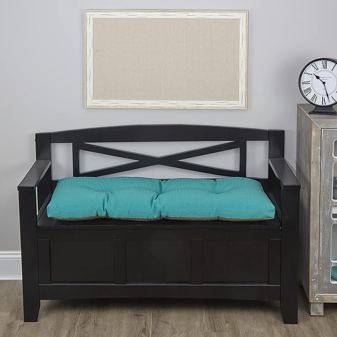 Klear Vu The Gripper Omega Non-Slip Tufted Bench Cushion for Indoor Furniture, Entryway Storage, Bay Window, 35 Inches, Solid Teal