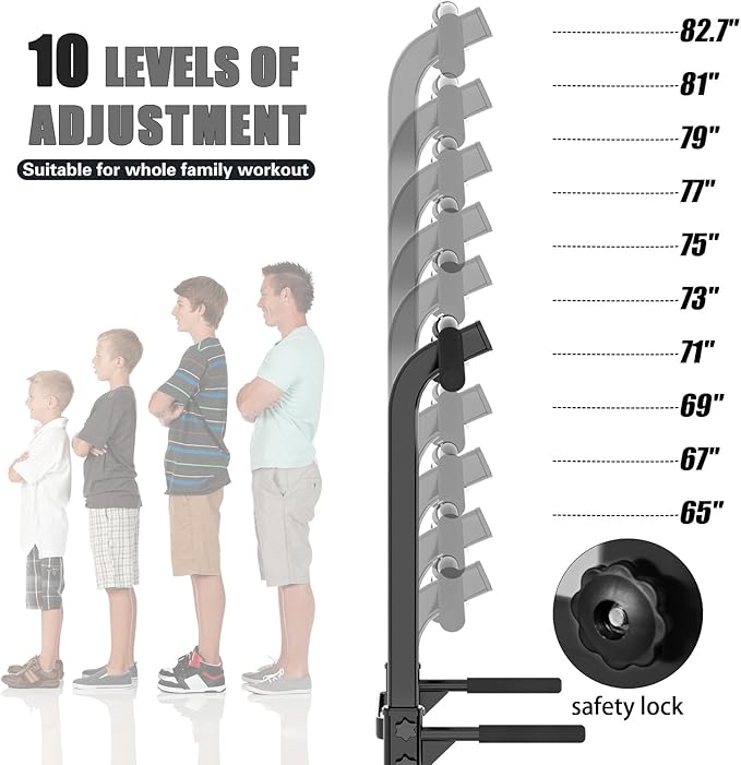 - 10 Levels Height Adjustment: 32.3Lx29.5Wx65~82.7H(inches). Weight capacity: 330LBS. The height of pull up bar can be adjusted from 58.5~82.7". Suitable for all adult fitness needs at home, office. And the lowest level is designed for children and the power tower is suitable for the whole family workout.