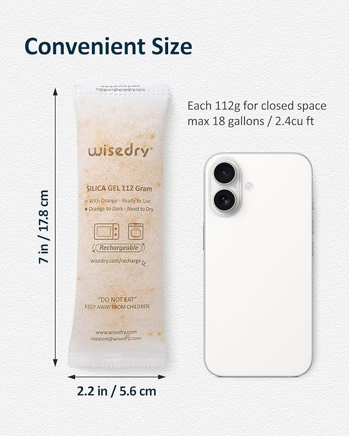 - ✅ - [ High Efficiency & Fit for Larger Space] - With high moisture absorption up to 35% as own weight. Each 112g suitable for closed space up to 18 gallons/2.4 cu ft.