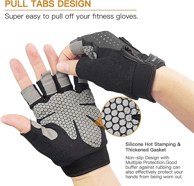 - Non-slip Design with Multiple Protection: Equipped with silicone hot stamping and thickened gasket, our exercise gloves are not only non-slip and wear-resistant. Good buffer against rubbing can also effectively protect your hands from being worn out!