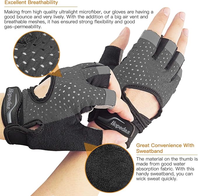 - Great Convenience with Sweatband: The material on the thumb is made from good water absorption fabric. With this handy sweatband, you can wick sweat quickly, no matter it is in the hand or on the forehead! Dirt can be wiped easily. There are also pull tabs on fingers, which make it super easy to pull off your sport gloves.