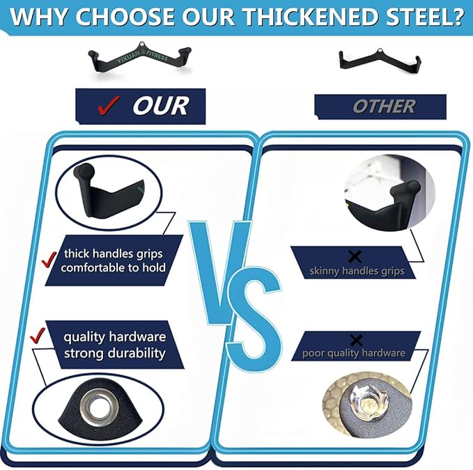 - Each of YIXUAN FITNESS handles is designed with function and aesthetics in mind, upgrade stainless steel eyelet universal attachment that makes it compatible with most cable machines.